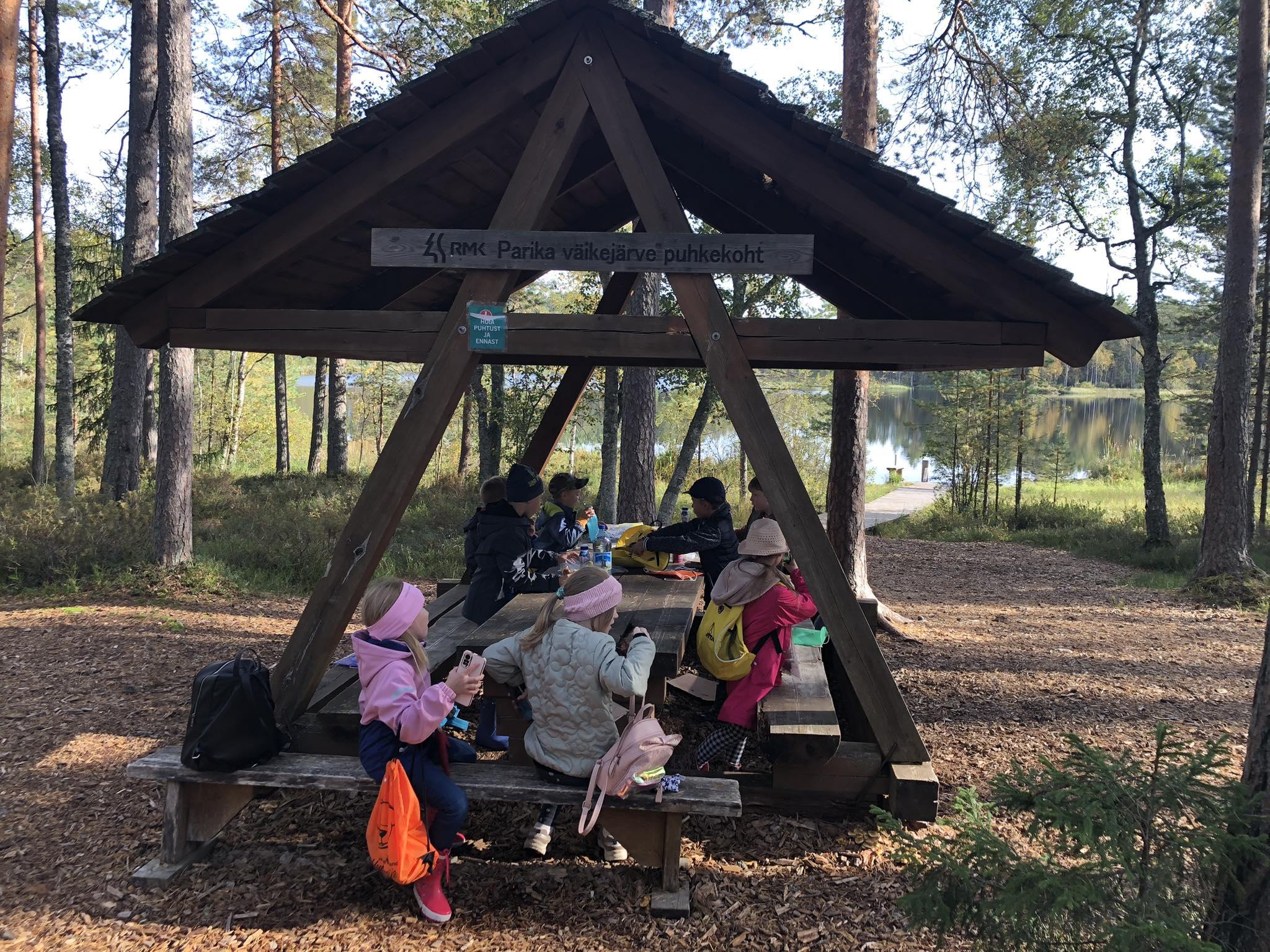 1. klass osales täna Parika väikejärve õpperajal toimunud "Puuga sõbraks" retkel.